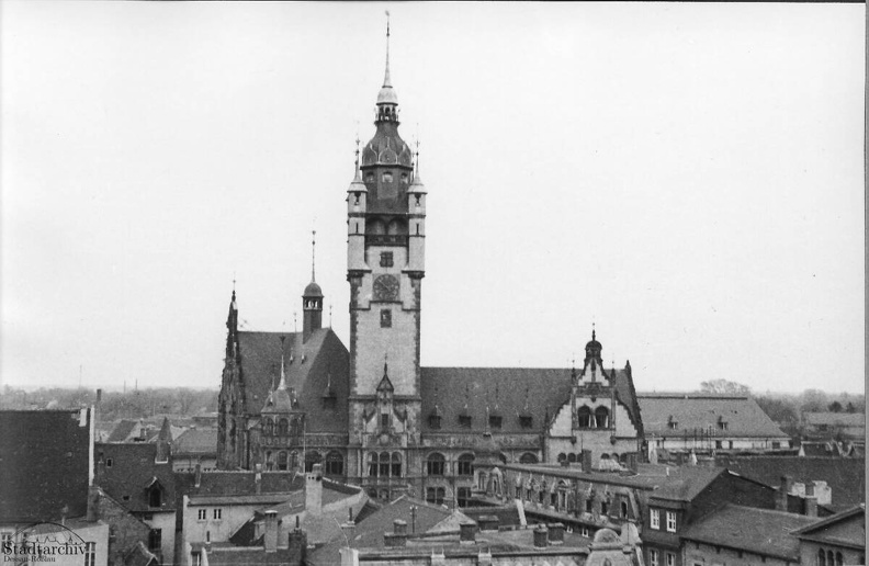 Rathaus Außenansichten 1901-1945; "Rathausfenster linke Seite vom Haupteingang Paterrre: links und rechts des Fensters außerhalb eine Rattenskulptur; Aufnahme 2002"