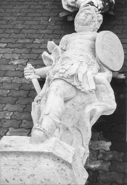 Zerbster Straße - Palais Dietrich (ehemals Philanthropinum) Sandsteinfigurengruppe am Palais Dietrich ist im Dez. 1995 von Gerüsten befreit worden und das erste male sichtbar Torbogen fehlt noch