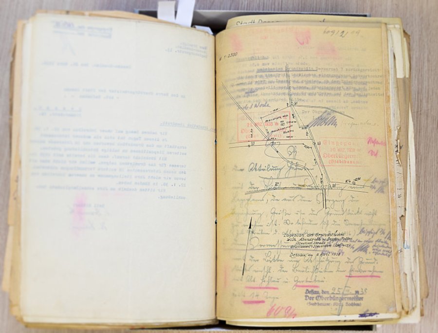 The Dessau-Roßlau City Archive also wanted to take advantage of this generous offer. The archive applied for the funding and received a positive decision. Thus, the following holdings could be deacidified in two measures in February to April and in December 2020: A 1.2 – Magistrate of the City of Dessau (1885-1945), A 2.80 – Dept. of the Interior (1945-1990, partial holdings) and A 2.01 – Lord Mayor (1945-1968, partial holdings). The processed holdings comprise 61.40 linear metres with 4,288 units of description. They are very frequently used core holdings of the municipal records. They document the entire range of the city’s administrative activities as well as the activities and administrative decisions of the Lord Mayor of Dessau and the departments responsible for order and security in the city.