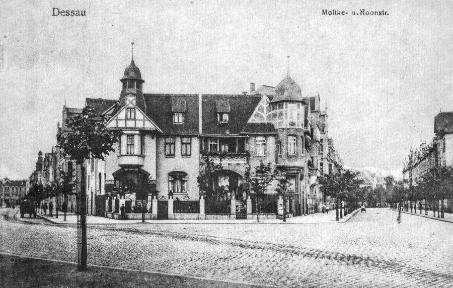 Dessau um 1926 – Blick in die Moltkestraße (links) und in die Roonstraße (rechts)
