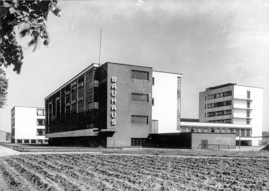 Foto von Emil Theis: Bauhaus in Dessau, Südwest-Ansicht, Eröffnung 4.12.1926