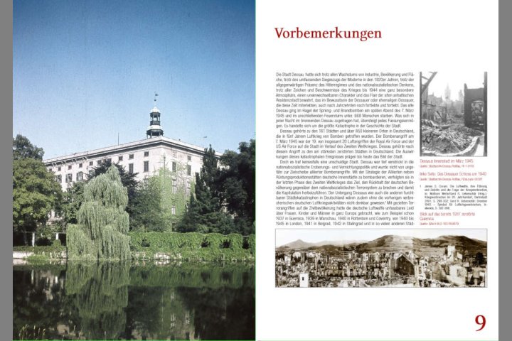 Am 7. März 1945 ging die alte Residenzstadt Dessau, die einstige Stadt der Aufklärung, der Moderne und des technischen Fortschritts, bei einem Nachtangriff der Royal Air Force in einem Hagel von Spreng- und Brandbomben sowie im nachfolgenden Feuersturm unter, 668 Menschen starben. Es handelte sich um die größte Katastrophe in der Geschichte der Stadt. Der Bombenangriff am 7. März 1945 war der 19. von insgesamt 20 Luftangriffen der Royal Air Force und der US Air Force im Verlauf des Zweiten Weltkrieges, an dessen Ende Dessau zu den am stärksten zerstörten Städten in Deutschland gehörte. Die Auswirkungen dieses katastrophalen Ereignisses prägen bis heute das Bild der Stadt. Doch es traf keinesfalls eine unschuldige Stadt