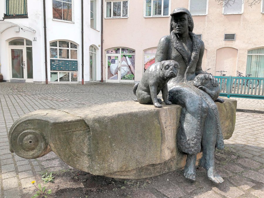 Putjatin-Denkmal (Plastik auf Sandsteinsockel) in Dresden-Kleinzschachwitz, Meußlitzer Straße/Putjatinplatz