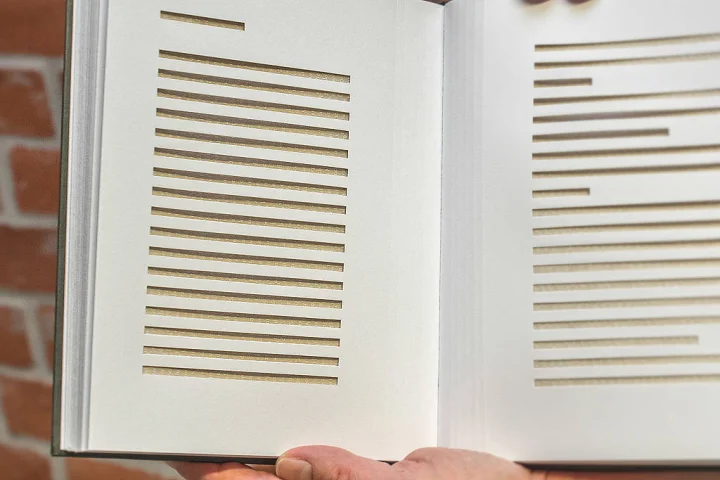 Her artist book “novel” was published in 1999 in an edition of 35 copies. It is one of a series of works in which Gerhild Ebel uses the technique of paper cutting with a cutter. “In her artist’s books and installations cut, novel and short story, the meaning and appearance of language, its appearance and extinction are not treated solely as aesthetic categories, but as sociological phenomena. They are books without text, carried solely by the patterns of visual memory and at the same time symbols of speechlessness and loss of language.” (Jena Municipal Art Collections)