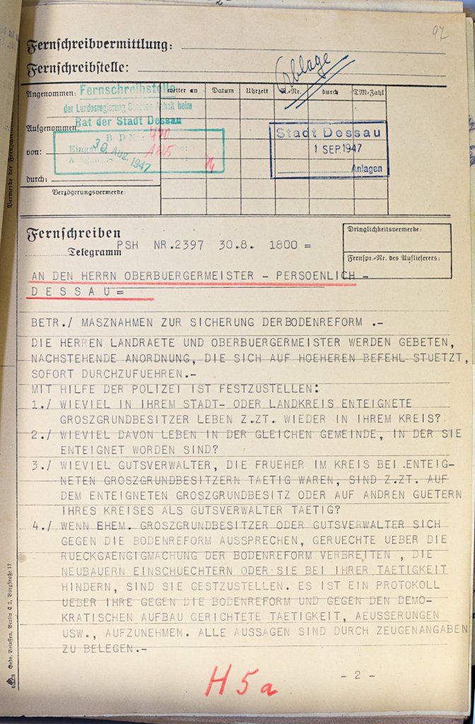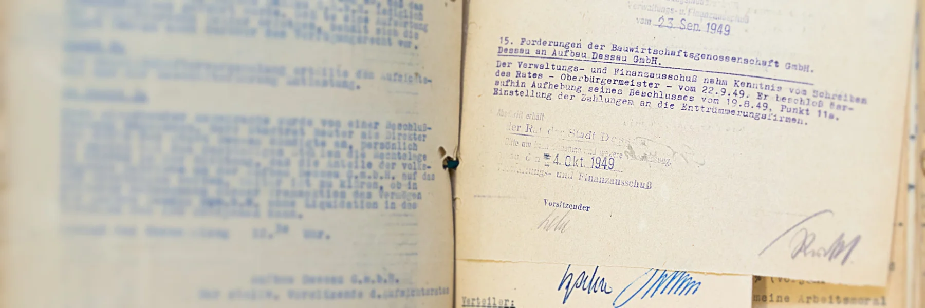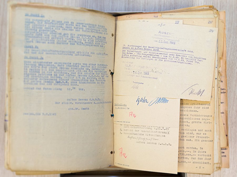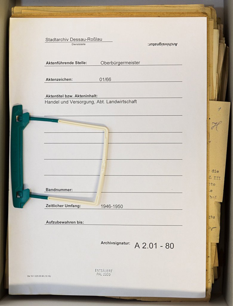 The Dessau-Roßlau City Archive also wanted to take advantage of this generous offer. The archive applied for the funding and received a positive decision. Thus, the following holdings could be deacidified in two measures in February to April and in December 2020: A 1.2 – Magistrate of the City of Dessau (1885-1945), A 2.80 – Dept. of the Interior (1945-1990, partial holdings) and A 2.01 – Lord Mayor (1945-1968, partial holdings). The processed holdings comprise 61.40 linear metres with 4,288 units of description. They are very frequently used core holdings of the municipal records. They document the entire range of the city’s administrative activities as well as the activities and administrative decisions of the Lord Mayor of Dessau and the departments responsible for order and security in the city.