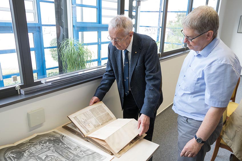Am 14. September 2017 erhielt das Stadtarchiv Dessau-Roßlau Besuch von Hans-Gustav Harksen aus Frankfurt am Main. Hans-Gustav Harksen, geboren 1940 in Dessau, stammt aus einer Familie, die über Jahrzehnte eng mit der Stadt Dessau verbunden war. Sein Vater Dr. Hans Harksen war zum Beispiel Stadtkämmerer und Stadtarchivar, seine Mutter Dr. Marie-Luise Harksen eine bedeutende Kunsthistorikerin, von der bis heute maßgebliche und unverzichtbare Inventarbände zur Kunst und Architektur Anhalts stammen. Anlässlich seines Besuchs stiftete Hans-Gustav Harksen der Stadt Dessau-Roßlau drei prachtvolle historische Bücher: Die Originalausgabe von Johann Christoff Beckmanns „Historie des Fürstenthums Anhalt“ in zwei Bänden (erschienen 1710) sowie die „Accessiones Historiae Anhaltinae“, ebenfalls von Beckmann (erschienen 1716). Von besonderem Wert sind diese Bände, weil darin die ursprünglichen als Kupferstiche beigefügten Abbildungen noch vollständig enthalten sind. Diese Schenkung reiht sich in eine große Zahl weiterer Schenkungen ein, die Hans-Gustav Harksen bereits in den vergangenen drei Jahrzehnten dem Stadtarchiv, der Anhaltischen Landesbücherei Dessau und anderen Einrichtungen der Stadt übergeben hat. Die drei Beckmann-Bände werden zukünftig im Stadtarchiv aufbewahrt und sind dort ab sofort allen Interessenten öffentlich zugänglich.