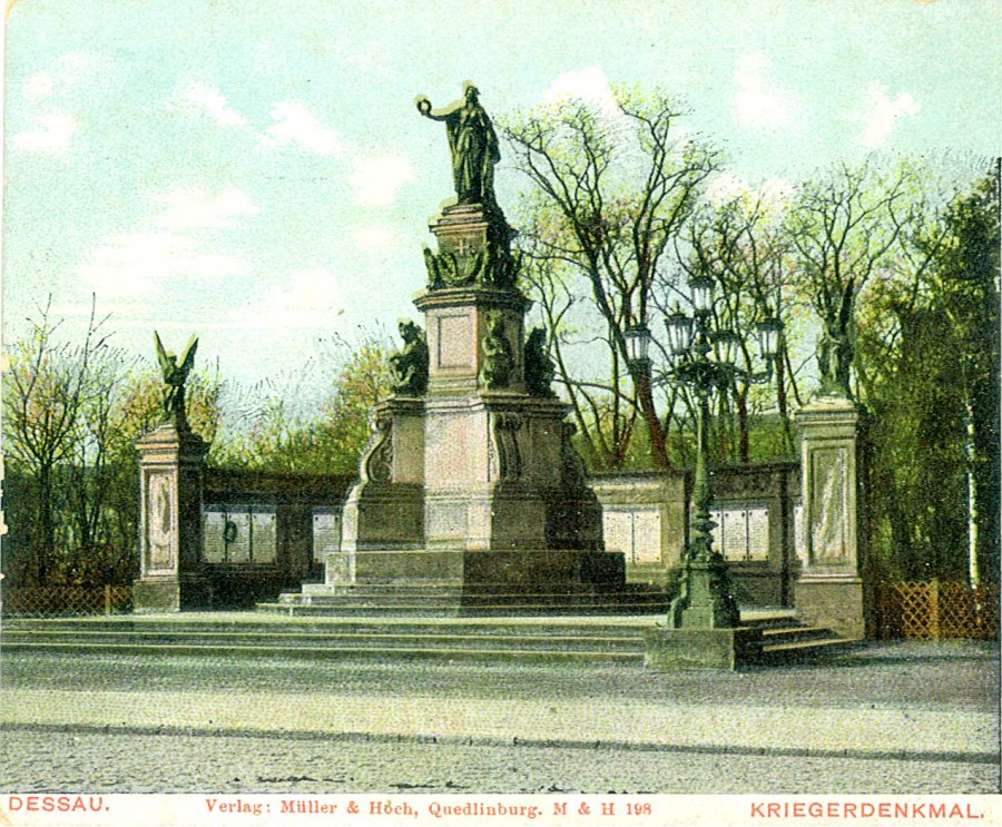 The Franco-Prussian War of 1870/1871, in which soldiers from Anhalt fought, ended with a triumphant, comprehensive victory for the Germans and led to the unification of the Reich under the leadership of Prussia. This event prompted contemporaries to look for symbols that would visualise these achievements in a dignified form for the present and future and, in this context, also commemorate the fallen. The war memorials erected in many places fulfilled this function. In Dessau, a war memorial was erected in 1874 as a state memorial for Anhalt, which played a central role in commemorating the war in Anhalt until the First World War.