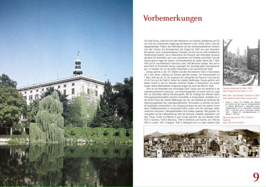 Am 7. März 1945 ging die alte Residenzstadt Dessau, die einstige Stadt der Aufklärung, der Moderne und des technischen Fortschritts, bei einem Nachtangriff der Royal Air Force in einem Hagel von Spreng- und Brandbomben sowie im nachfolgenden Feuersturm unter, 668 Menschen starben. Es handelte sich um die größte Katastrophe in der Geschichte der Stadt. Der Bombenangriff am 7. März 1945 war der 19. von insgesamt 20 Luftangriffen der Royal Air Force und der US Air Force im Verlauf des Zweiten Weltkrieges, an dessen Ende Dessau zu den am stärksten zerstörten Städten in Deutschland gehörte. Die Auswirkungen dieses katastrophalen Ereignisses prägen bis heute das Bild der Stadt. Doch es traf keinesfalls eine unschuldige Stadt