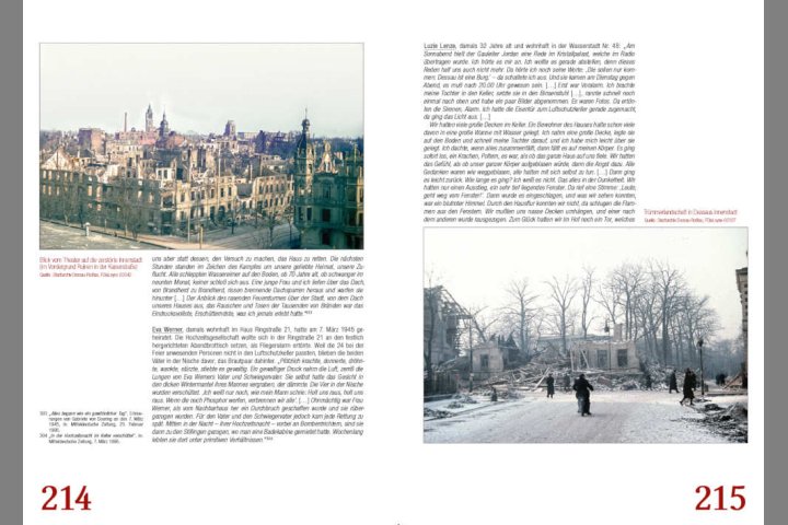 Das Buch erscheint als zweite, erweiterte und überarbeitete Auflage des im Jahr 2004 in der Reihe Veröffentlichungen des Stadtarchivs herausgegebenen Buchs „Dessau in Trümmern. Bilder aus Dessau 1940-1947“. Das aus Farbdiapositiven und Schwarz-Weiß-Aufnahmen bestehende Bildmaterial aus dem Nachlass des Dessauer Fotografen Otto Leyse, das schon in der ersten Auflage Verwendung fand, bildet auch die illustrative Basis des vorliegenden Bandes. Viele dieser Aufnahmen entstanden unmittelbar nach den Bombenangriffen und vermitteln ein mahnendes Bild der Zerstörungen jenseits der offiziellen Propagandafotos dieser Zeit. Die Leyse-Fotos werden um zahlreiche Schwarz-Weiß-Fotos aus Beständen des Stadtarchivs und aus Privatbesitz ergänzt. In den die Geschehnisse beschreibenden Text flossen zahlreiche Aussagen von Zeitzeugen ein, die einen vielstimmigen, lebendigen Eindruck vom Grauen des Bombenkrieges vermitteln.