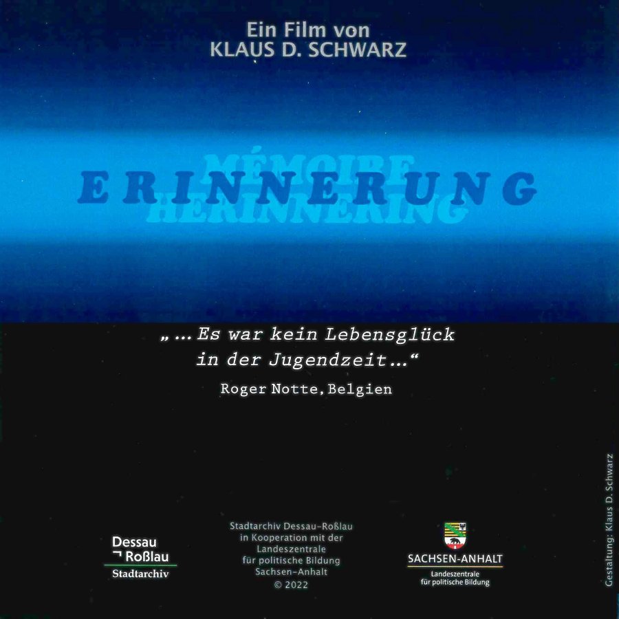 Im Stadtarchiv Dessau-Roßlau befindet sich eine umfangreiche Sammlung von Dokumenten, Fotos und Zeitzeugenberichten von ehemaligen Zwangsarbeiterinnen und Zwangsarbeitern, darunter auch von drei Belgiern. Auf der Basis ihrer Erinnerungen, mit Dokumenten dieser Zeitzeugen, Archivalien des Stadtarchivs sowie weiteren archivalischen und audiovisuellen Quellen entstand ein ca. 58-minütiger Dokumentarfilm mit dem Titel „Erinnerung“. Autor des Films ist der Dokumentarfilmer Klaus D. Schwarz (u. a. „… und Tante Ju zog in den Krieg“). Fachlich begleitet wurde das Filmprojekt durch das Stadtarchiv Dessau-Roßlau, finanziell unterstützt durch die Landeszentrale für politische Bildung des Landes Sachsen-Anhalt und die Stadt Dessau-Roßlau.